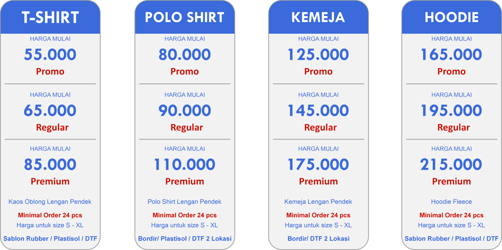 Polo Shirt, Kemeja, Hoodie, Jersey, Jaket, Celana, Seragam Perusahaan